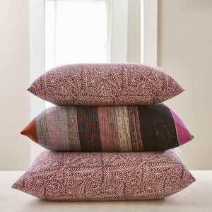 We love the nostalgic look of our newest collection of block-printed pillows. Not only because of their vintage-inspired block-printed patterns, but also because their fabrics have a worn and washed look. The colors have the appearance of being slightly sun baked and faded giving the pillows a vintage feel, with subtle nuances adding to the charm. Combining them with our limited edition raw silk multi-stripe pillows adds a bit of a "wink".