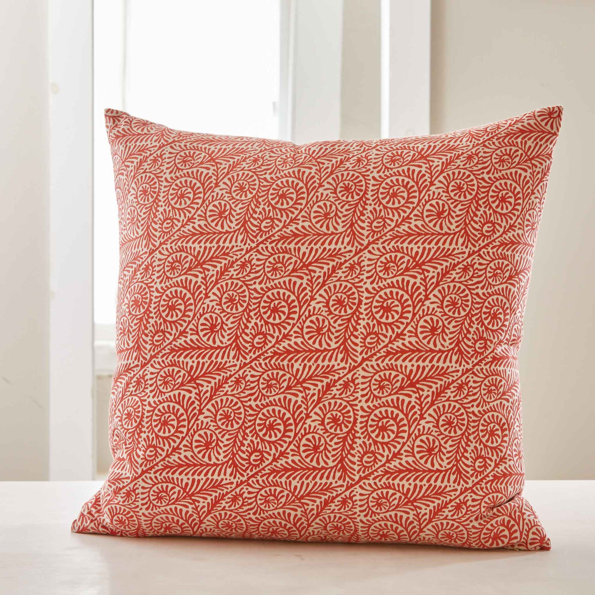 Red Orange Overall Block-Printed Scroll Pattern Pillow