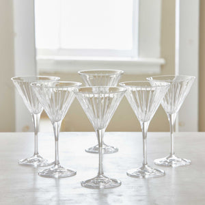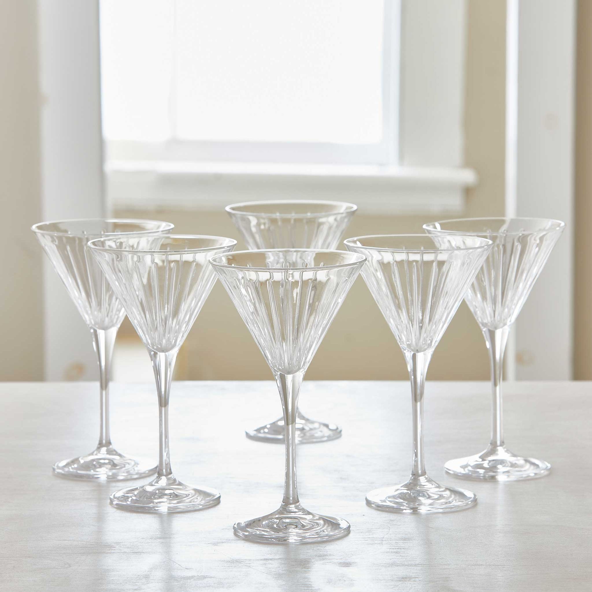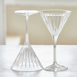 Celebrate the art of the cocktail with our sparkling crystal martini glasses. Each brilliantly clear glass features a graceful design that creates a shimmering optical effect, beautifully catching and reflecting the light. This elegant, mouth-blown glass is perfect for everything from martinis and cosmos to frosty daiquiris, while adding a note of glamour to any festivities.