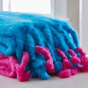 From the "Color Lovers" collection, these mohair throws are executed in bold and saturated colors. Heightening the drama is the elongated hand-braided and knotted fringe.