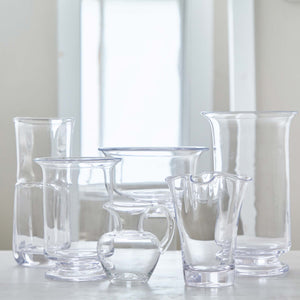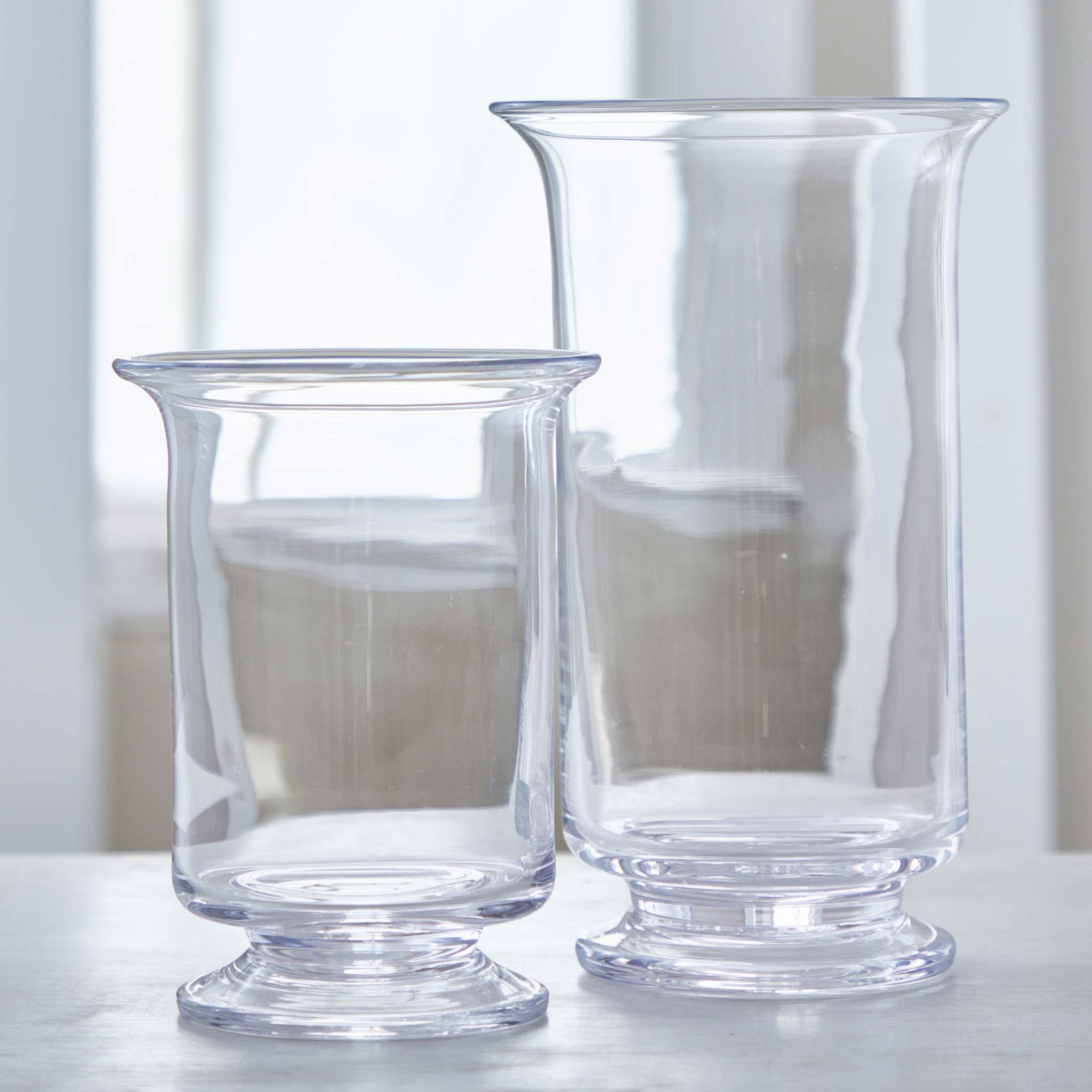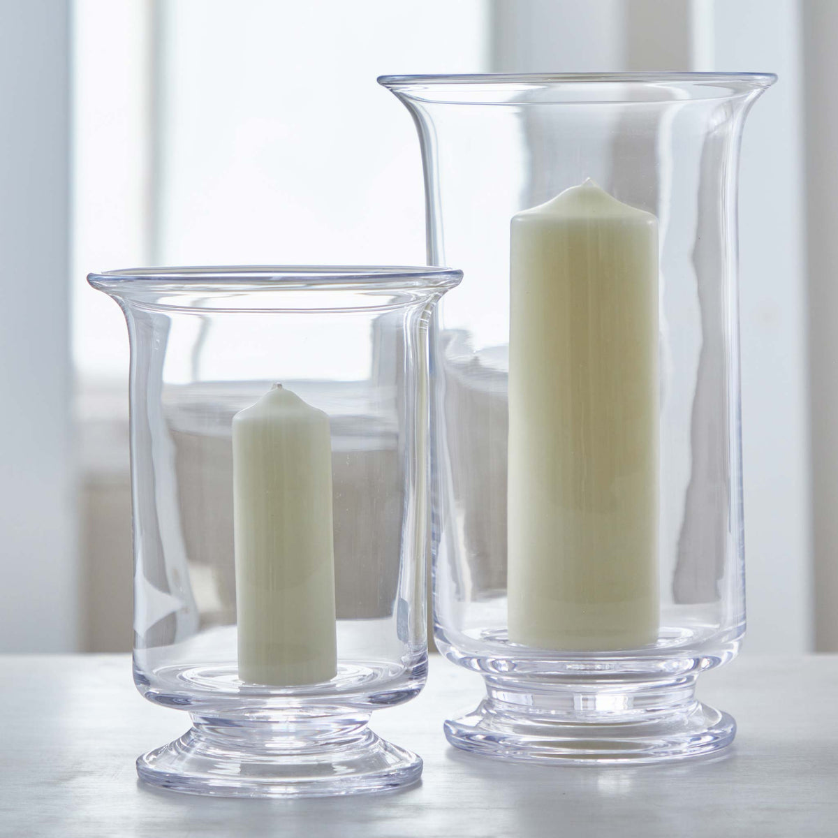 These glass hurricanes from Simon Pearce embody timeless style and simplicity. Perfect for indoors or outdoors, the hurricanes are designed to hold pillar candles, greenery or flowers.