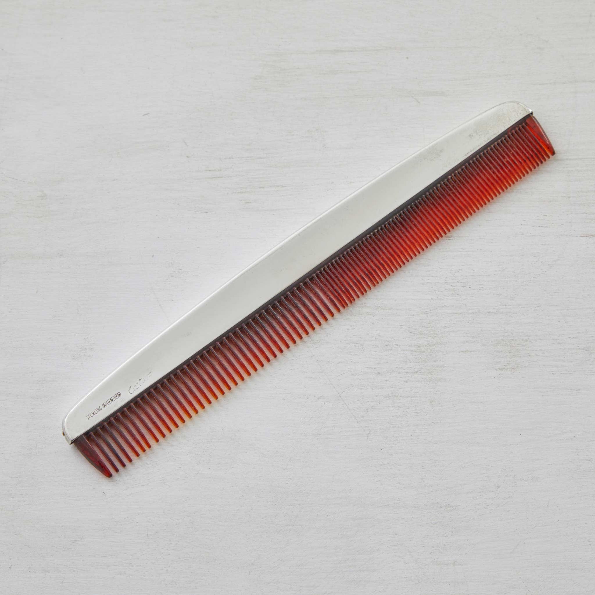 A sterling silver comb & brush are the embodiment of timeless elegance in seemingly simple tools. Crafted from gleaming 925 sterling silver, their sleek, sculpted handles bear the iconic Cartier signature - subtle, yet undeniably luxurious. Whether perched on a vanity or tucked into a travel case, these items speak of old-world sophistication, where every detail - even grooming- was touched by artistry.