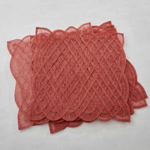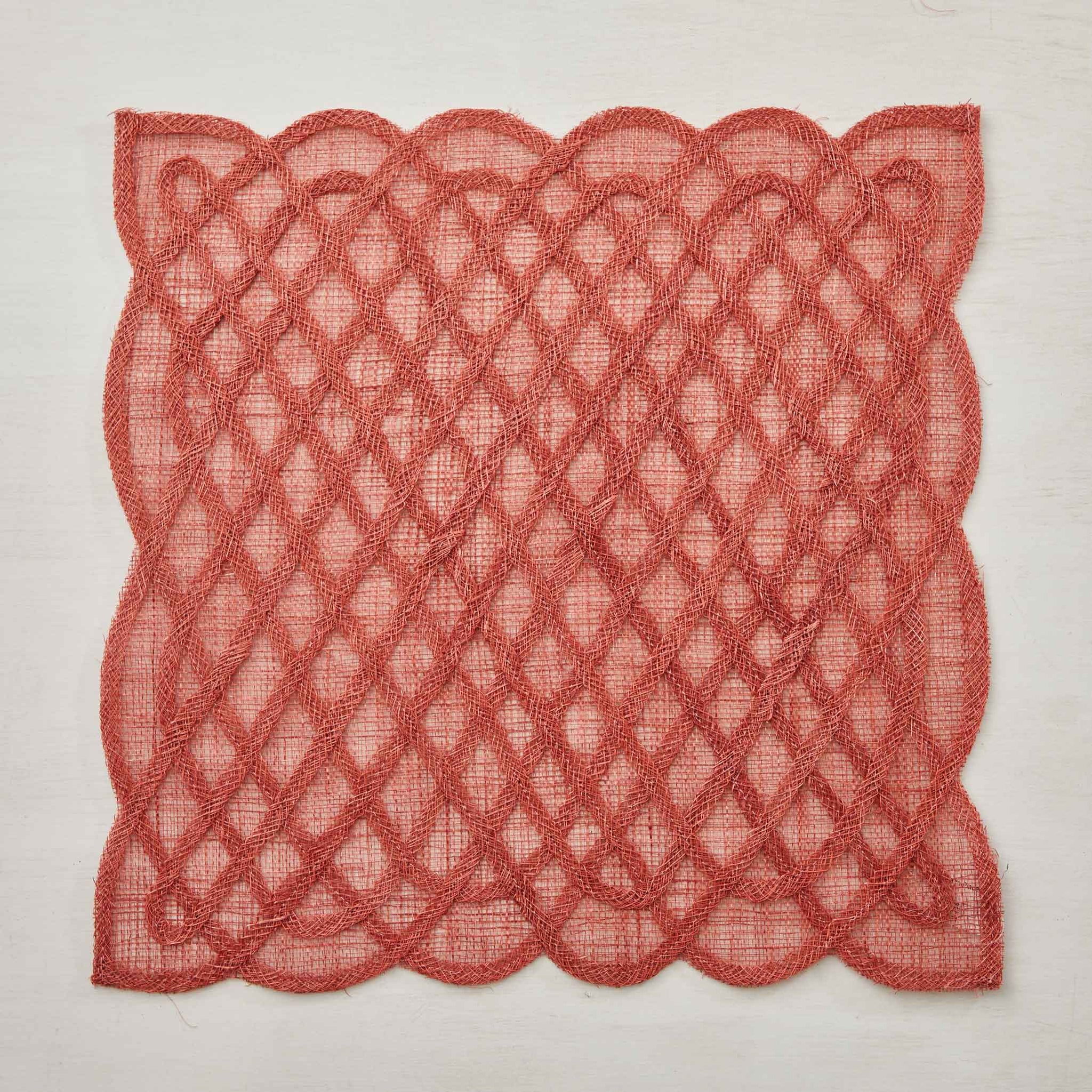 Our newest selection of placemats are fashioned from ethically sourced and harvested natural materials like raffia and abaca. Handmade by seasoned artisans, our natural fiber placemats are elevated with a raised crisscross design and scalloped edge and are fabricated in a lovely tomato red colorway. Needless to say we're smitten...