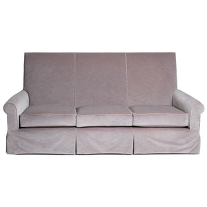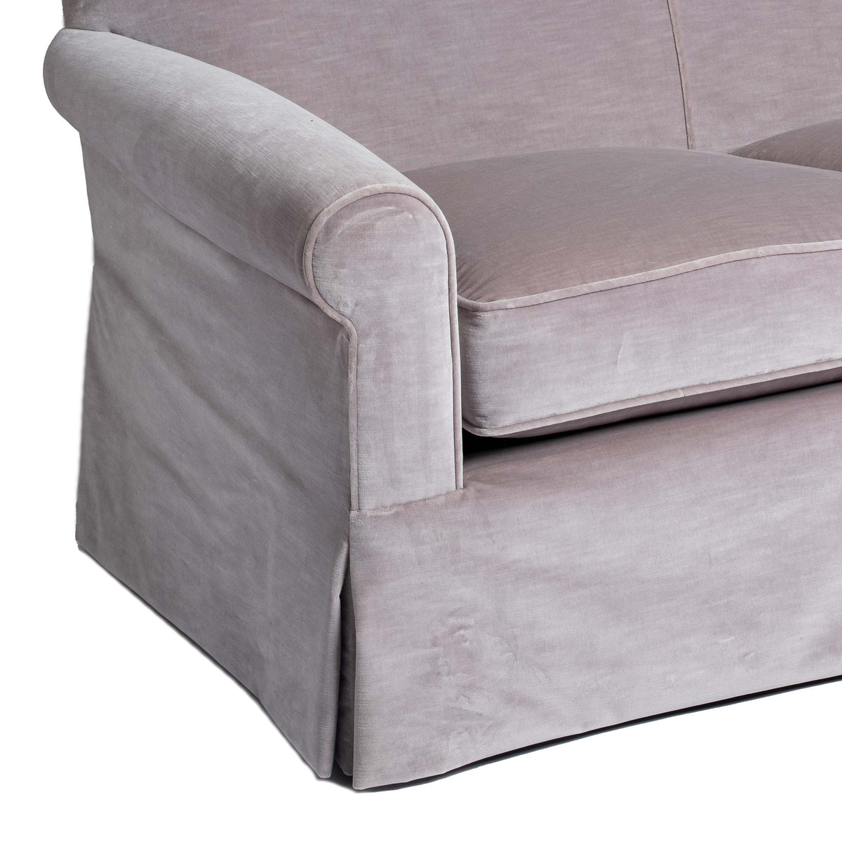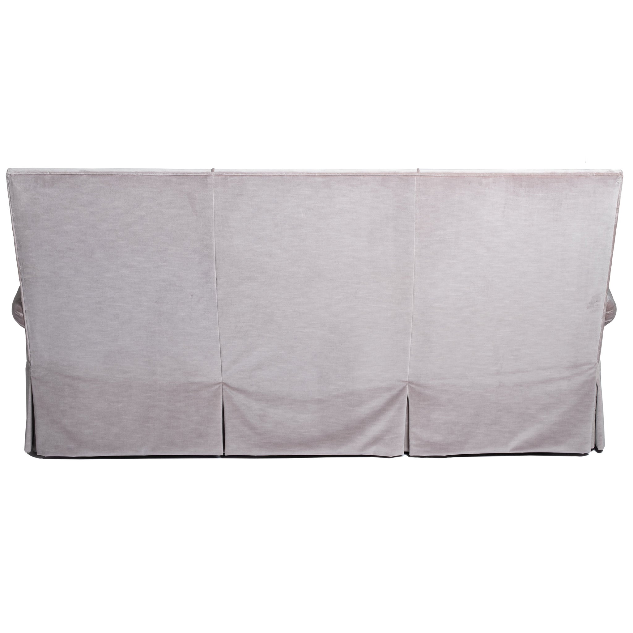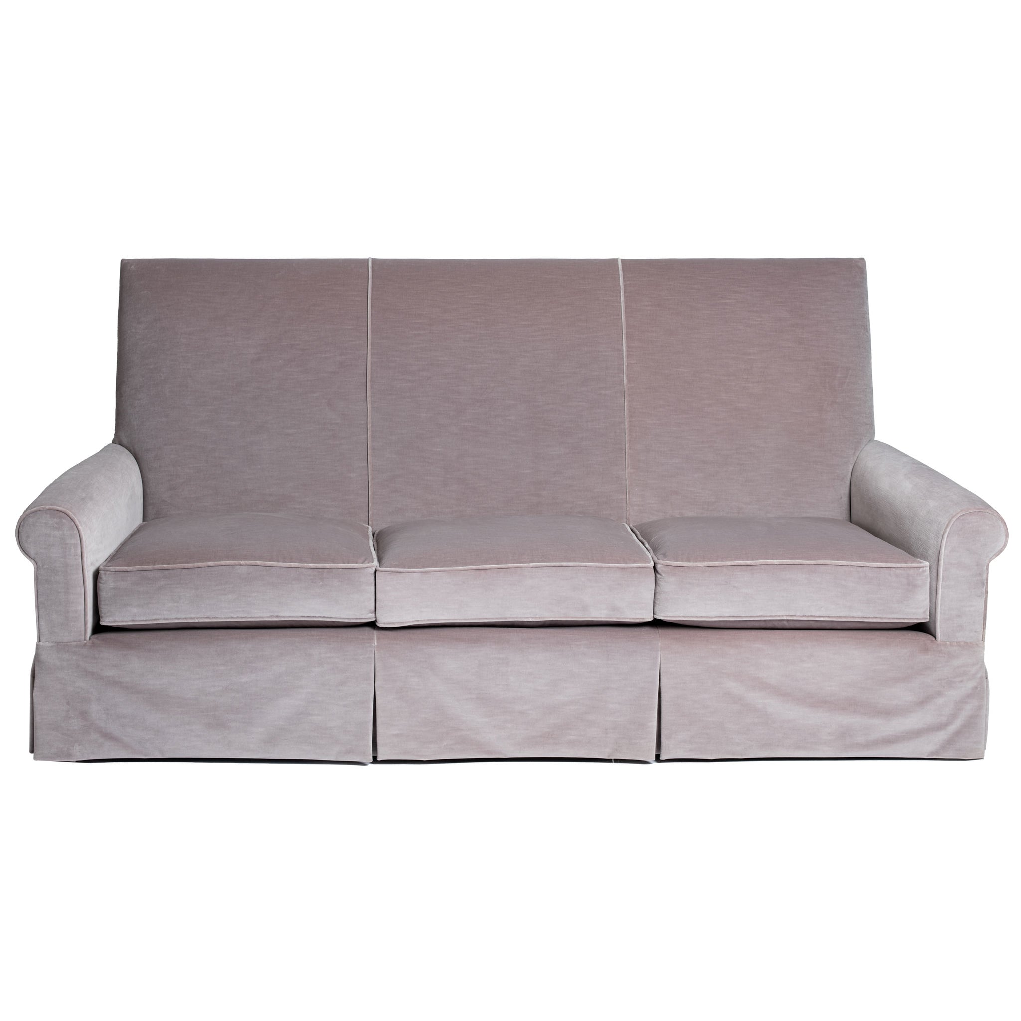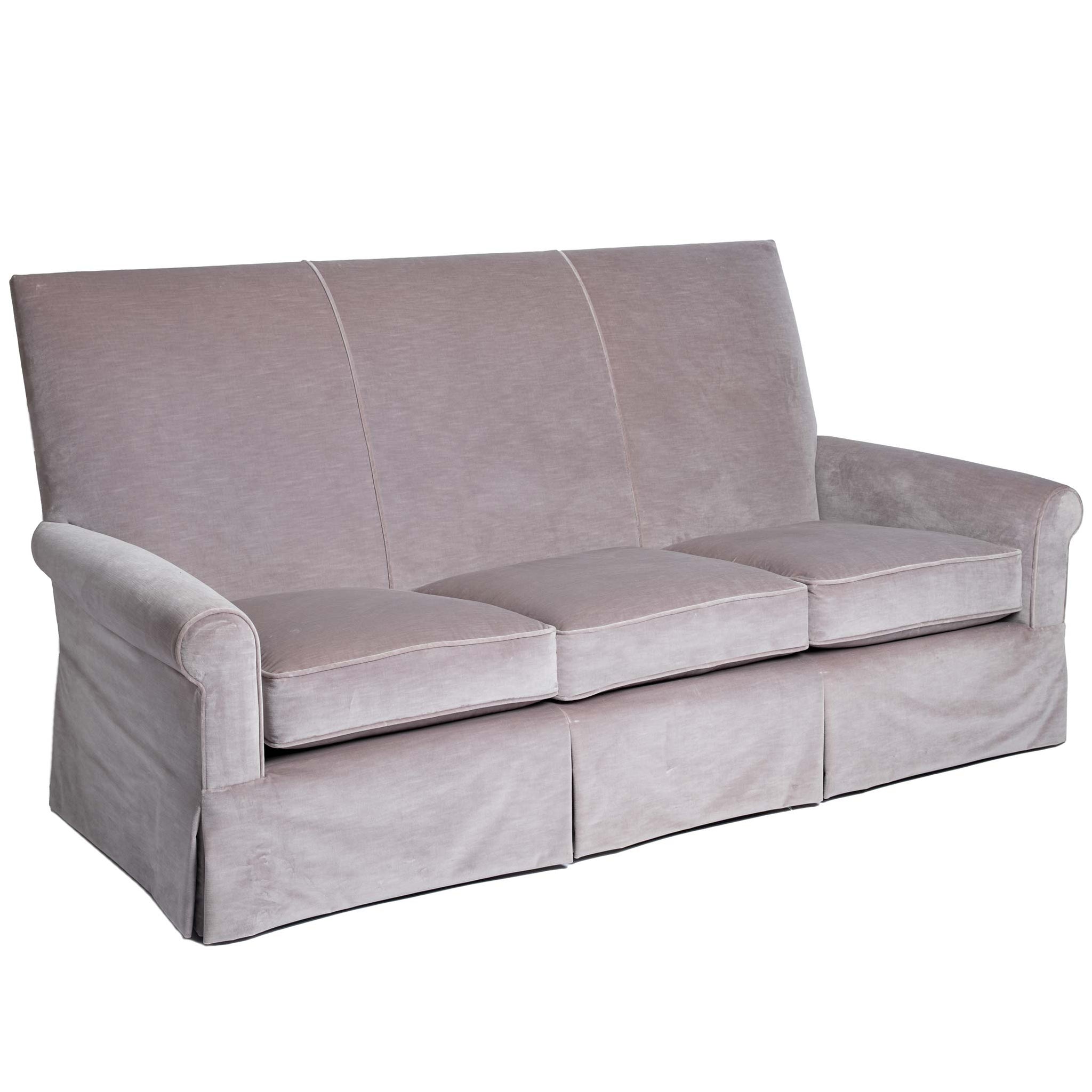 A 3-seat high back Donghia sofa, circa 1990's, recently upholstered in a pale lavender cotton velvet fabric from Holly Hunt. Donghia is an American company founded in 1968, and they have always been known for their classic and timeless designs. The sofa is in excellent condition and is ready to place in a house.